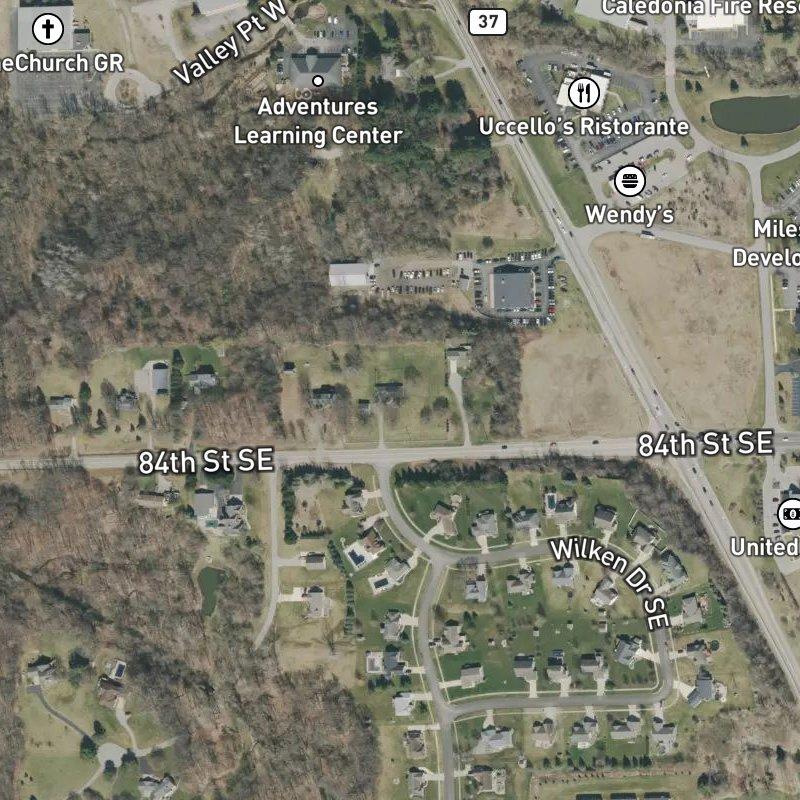 You're looking at a nine-acre subdivision where lots run around one and a half acres each—plenty of breathing room without feeling remote. It's about twenty-five minutes from downtown Grand Rapids, which means you can hit the city when you want but aren't living in the noise of it. Gerald R. Ford Airport is just under nine minutes away, so if you travel, there's almost no commute friction. The landscape here is open and residential, with eighteen restaurants within a mile and a solid grocery situation nearby; Lepard Preserve is a short walk if you need green space, and Emmons Lake sits about a mile and a third away for weekend exploring.