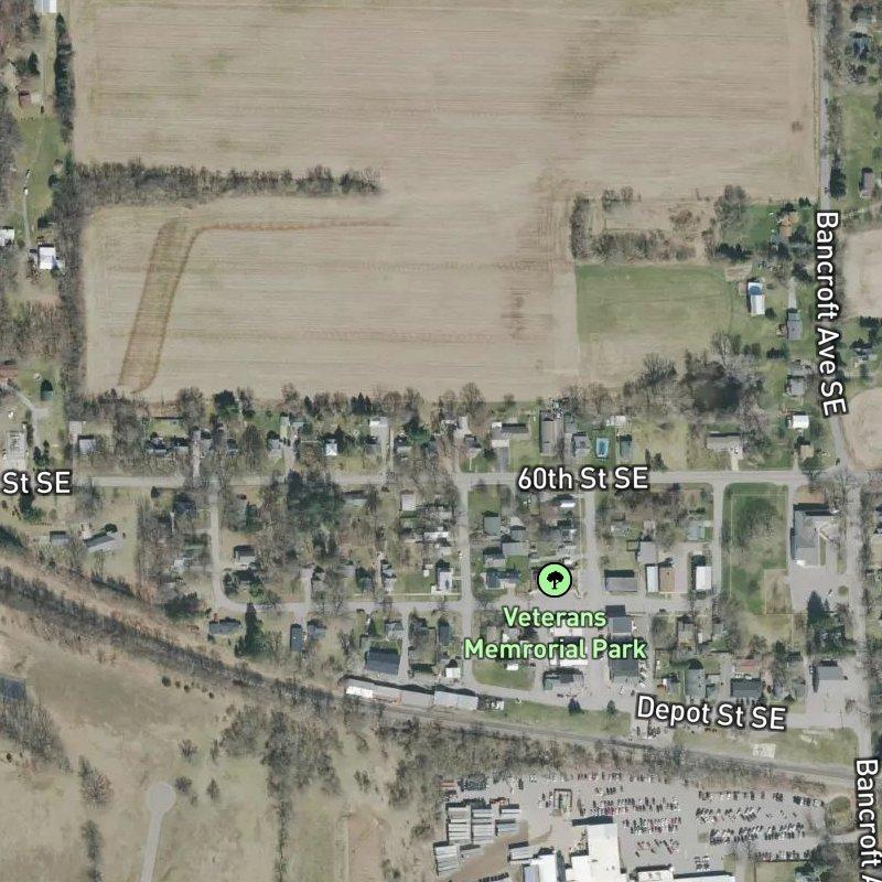 This six-acre platted subdivision sits tight with an average lot size of 0.37 acres—genuine neighborhood density without feeling cramped. Veterans Memorial Park is just a two-minute walk away, and there are two parks within a mile, so green space isn't hard to find. You've got six restaurants within a mile, including a couple within a 15-minute walk if you're in the mood to stretch your legs. The median home value hovers around $200K. Gerald R. Ford International Airport is 17.6 minutes out, and downtown Grand Rapids runs about 27 minutes—close enough to tap into the city without living in it. Lowell Area Schools serves the area, giving you solid local options without the commute headache.
