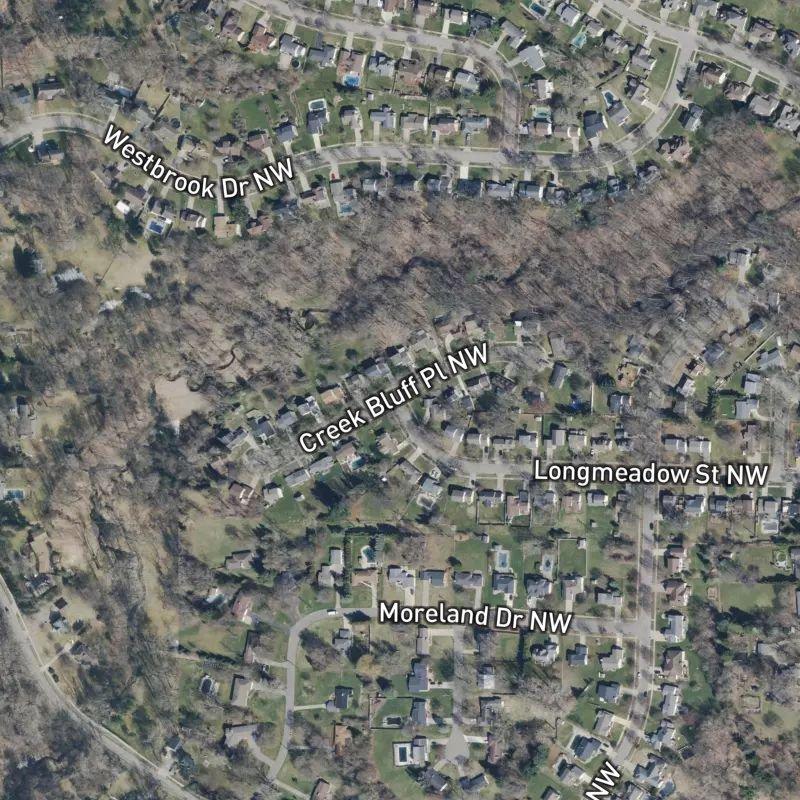 Early morning light hits best here—when the mature trees cast long shadows across the quiet streets and the whole nineteen acres feel like they're yours alone. Oakleigh Estates No. 1 sits on the west side of Grand Rapids, in the Richmond-Oakleigh neighborhood, where mid-century ranches and traditional two-stories anchor half-acre lots. Blandford Nature Center is a fourteen-minute walk, and Richmond Park—complete with a public pool, playground, and one of the city's best sledding hills—anchors the surrounding area. Downtown is just fourteen minutes away by car, so you're close enough to run errands but far enough to actually breathe.