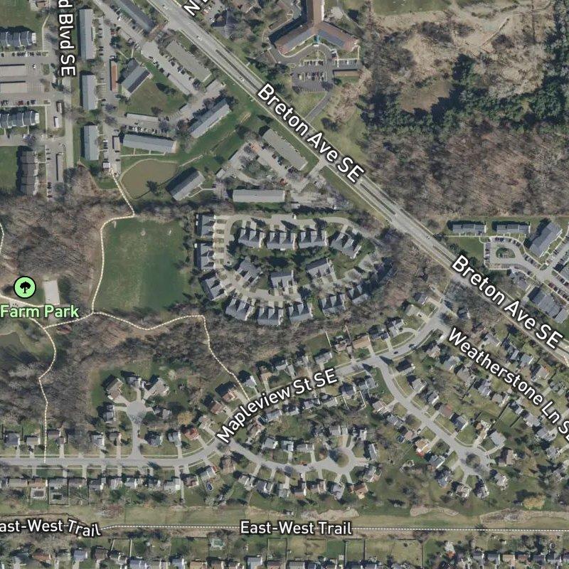 Old Farm Village Condominiums sits on 11 acres in the Crosswinds No.2 Area, where the median home value hovers around $282K and each unit claims roughly 11 acres—a spread that feels generous for the region. What makes this place distinct is its access: a transit stop is literally steps away, which means getting downtown Grand Rapids takes about 17 minutes, and Gerald R. Ford Airport is just 9 minutes out. The grocery store is a 7-minute walk, and there are 36 restaurants within a mile, along with 24 grocery stores within two miles, so you're not hunting far for basics. Old Farm Park sits a 4-minute walk away, and six parks total fall within a mile radius, which matters if you're the type who actually uses them. The nearest coffee shop is 1.2 miles down the road. Schools feed into Kentwood Public Schools, and the bones of this place—a condo community built around actual green space and real proximity to transit—suggest someone thought through the layout rather than just cramming units into available land.