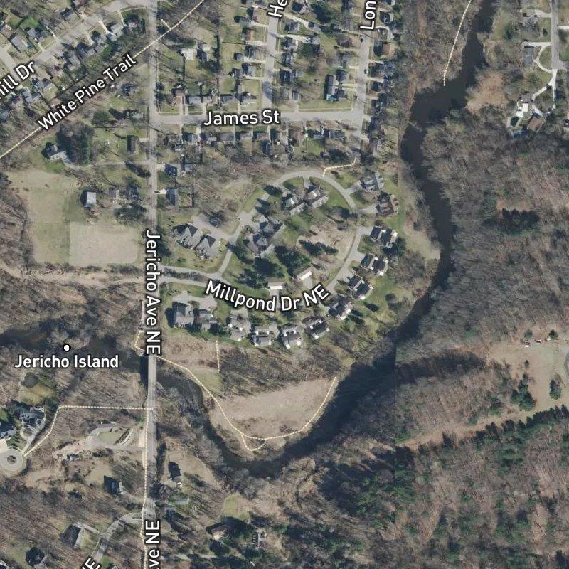 What surprises people about Olde Millpond is how much breathing room you get for the price. This is a 23-acre condo community where the median home runs around $509K—not a cramped urban cluster or a sprawling exurb, but something in between that actually works. You're 21 minutes from downtown Grand Rapids, which means you can be in the city's orbit without living in it. The nearest coffee shop is a 10-minute walk; grocery stores are within reach; restaurants number in the dozens nearby. There's an unnamed park two minutes away, and if you count within a mile, you're looking at 22 parks total. It's the kind of place where you can have land without sacrificing access.