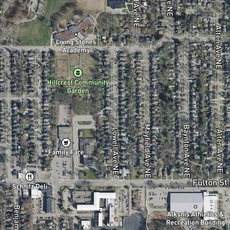 What might surprise you about Orchard Hill Add. is how much neighborhood actually fits into 10 acres—tree-lined streets and modest lots that feel genuinely established rather than freshly platted. You're steps from transit and a grocery, a three-minute walk from coffee and restaurants, and Hillcrest Park is a quick stroll away if you need grass underfoot. The subdivision sits within Fulton Heights, where the Fulton Street Market has been operating for over a century and the Hillcrest Community Garden sprawls across more than 100 plots. Median home values here run around $334K, and the location delivers real convenience—downtown Grand Rapids is six minutes away, and there are 283 restaurants within a mile if you're not in the mood to cook. The dog park is a ten-minute walk, and if you ever want to launch a boat, Butterworth Park is three miles down the road.