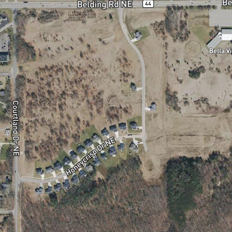 Orchard View sits on 26 acres of platted residential land, and what sticks with you first is the sheer open space—room to breathe that you don't find closer to the city. The subdivision anchors itself on the quieter side of West Michigan, about 21 minutes from downtown Grand Rapids and roughly 30 minutes from Gerald R. Ford Airport, making it workable for commuters who'd rather not live in the thick of things. Homes here run around $665K. Three parks sit within a mile, including one a short walk away, and Lake Bella Vista is 1.6 miles out if you want water access. Grocery stores cluster reasonably close—six within two miles—and restaurants aren't far either, with the nearest about 1.3 miles down the road. Rockford Public Schools serves the area. It's the kind of place where you get land without completely sacrificing convenience, set in the Cannonsburg Rd & Myers Lake Ave area that keeps you connected but separate.