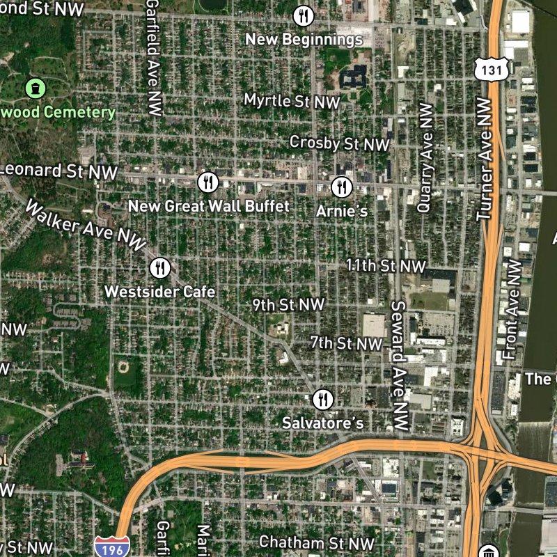 Spread across 206 acres on the west side of Grand Rapids, Panfil'S Assessor'S Plat sits in West Grand, where the Grand River runs nearby and downtown is just six minutes away by car. Groceries, restaurants, and coffee shops are all within steps—a rare convenience for a subdivision this size—and there are ten parks within a mile, including Nagold Park an easy walk away. Traditional homes with aluminum siding dominate the landscape, and the median sale price hovers around $274K, making this corner of the neighborhood one of Grand Rapids Public Schools' more accessible pockets. Transit access is excellent, and though the area leans car-friendly for most errands, the sheer density of dining options (660 restaurants within a mile) and grocery stores nearby means you're never far from what you need.