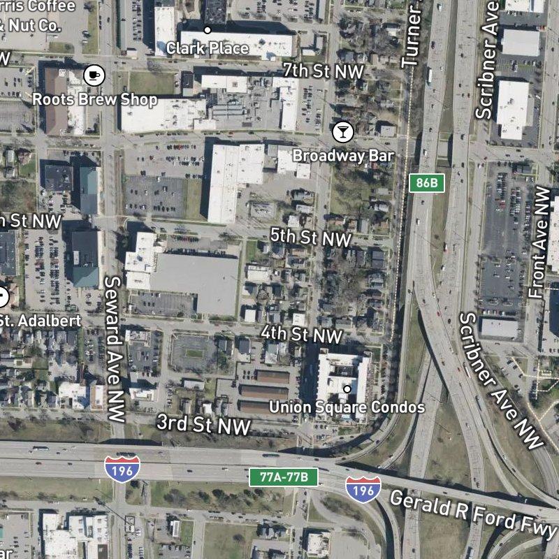 What surprises people about Panfil's Assessor's Plat No. 26 is how close everything lands—you're in a six-acre pocket of West Grand where a coffee shop is a three-minute walk, a restaurant four minutes, and downtown Grand Rapids itself just 4.4 minutes by car. The neighborhood sits on what might be the most transit-friendly block in the area, with a stop essentially at your doorstep, and 384 restaurants within a mile means you're never far from dinner, whether that's a brewpub, a taqueria, or something else entirely. Homes here run around $208K, which buys you proximity to 22 parks in the immediate radius—including the Fish Ladder on the Grand River, where you can watch spawning fish work upstream each spring. The lots are small and dense, the kind of subdivision where you feel the hum of real neighborhood life rather than isolation, and that's precisely the point.