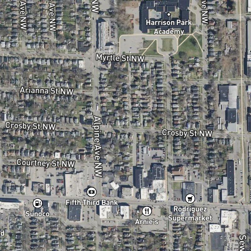 Most people picture West Grand as miles from anywhere—but Panfil's Assessor's Plat No. 54 sits in the thick of it, a tight 9-acre subdivision where you're six minutes from downtown Grand Rapids and everything you need is basically on your doorstep. The neighborhood has that dense, walkable feel where the nearest grocery and restaurant are steps away, transit is right there, and Harrison Park—with its baseball diamonds and tennis courts—takes a five-minute walk. Homes here run around $204K, and while the plat itself is small-lot territory (averaging 0.11 acres), you're plugged into a West Grand landscape where over a hundred restaurants, thirty grocers, and five parks within a mile mean you're not trading proximity for variety. Grand Rapids Public Schools serves the area, and if you're angling for water access, Comstock Riverside Park's boat launch is just over a mile away. It's the kind of location where being close to downtown doesn't mean isolation—it means your commute is a blink and your weekends don't require a drive.