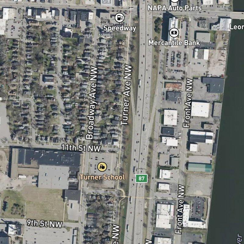 Early morning light hits the brick facades best here—Panfil's Assessor's Plat No. 56 sits just 5 minutes from downtown Grand Rapids, close enough that you're not really suburban but far enough to land 13 acres of actual plat with room to breathe. The 0.11-acre lots mean neighbors aren't distant, and the median home value hovers around $154K, which means you're building equity without a crushing mortgage. Dining is the real draw—204 restaurants within a mile and a coffee shop a 5-minute walk—and a transit stop is literally steps away if you need it. A grocery store's 6 minutes on foot, Canal Street Park is a short walk, and there are 13 parks within a mile. School-age kids head to NexTech High School. The neighborhood sits in West Grand, where the old furniture-industry bones still show in the dense grid of streets and the community still feels small despite 17,000 residents around you.