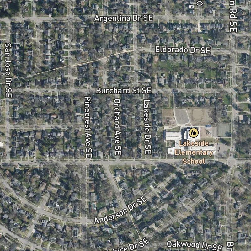You've got this tight 10-acre grid with lots running about a seventh of an acre each, so homes sit close enough that you're genuinely in something cohesive—no sprawl, just solid residential blocks where the median sits around $483K. It's walkable enough that coffee is an 11-minute stroll and you've got 90 restaurants within a mile, though you'll probably drive downtown Grand Rapids in about 11 minutes anyway when you want the bigger scene. East Grand Rapids Public Schools covers the area, and there's a transit stop just two minutes on foot if you need it. Reeds Lake sits less than a mile away, and John Collins Park is a reasonable walk if you're looking for green space—there are actually four parks within a mile of here. It's the kind of neighborhood that feels like part of something larger without losing its own character.