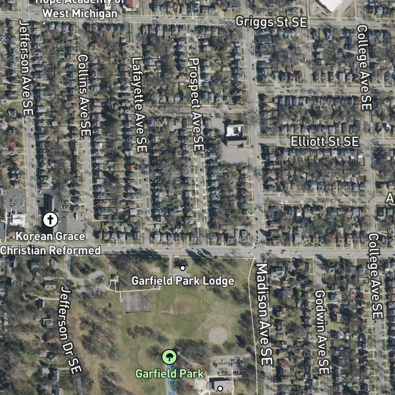 Park View Add. sits nine acres in Southeast Grand Rapids, about eight minutes from downtown—close enough to slip into the city proper but rooted in its own block. Lot sizes run tight at about 0.12 acres each, the kind of footprint that keeps things walkable to a grocery store in nine minutes or a restaurant in six. Homes here hover around $186K. The real draw is what's already built around you: twelve parks within a mile, fifty-four restaurants nearby, and a transit stop steps from your door. Garfield Park is a four-minute walk, making it the natural gathering place. Grand Rapids Public Schools serve the area. Downtown is close enough for a quick commute; the airport runs just under twenty minutes if you're headed that direction. This is the kind of place where density works because someone put thought into spacing—enough room to breathe, enough access to matter.