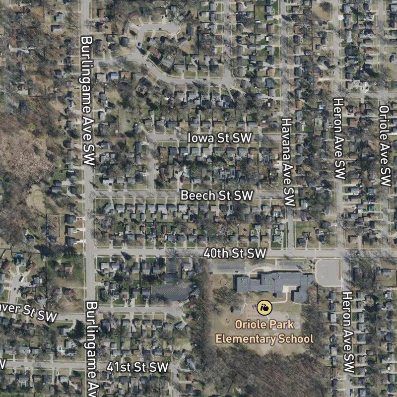 Parkwood Add. No.3 is an 11-acre subdivision where the lots run tight—about a fifth of an acre each—and the homes sit in the $293K range, which means you're within shouting distance of downtown Grand Rapids (10.9 minutes by car) without feeling like you're paying for it. The neighborhood sits in the Woodview Plat Area and feeds into Wyoming Public Schools, and what makes the actual day-to-day livable is the density of what's around you: sixty restaurants within a mile, seven parks in the same radius, a grocery within a couple blocks, and a coffee shop close enough that you don't need an excuse. A restaurant is an eight-minute walk from your front door, the transit stop is another eight minutes past that, and Gerald R. Ford airport sits about twenty minutes north when you need it—which means you've got the convenience of being near everything without the feeling that everything is next door.