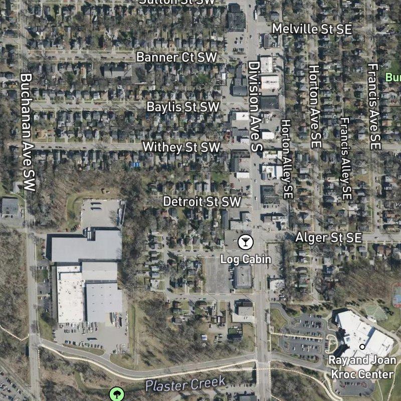 Driving through Patterson's Add. feels immediate—you're eight minutes from downtown Grand Rapids, but the five-acre subdivision sits deep in Garfield Park's neighborhood fabric, where Queen Anne Victorians and brick Foursquares line streets that connect to over 60 restaurants within a mile, many of them the taquerias and Latin markets that define Division Avenue. The nearest restaurant is a ten-minute walk, and transit stops are steps away, though the real draw is proximity to what makes the area itself: Plaster Creek park is a four-minute walk, and seven parks sit within a mile. Homes run around $256,250 in this part of town, where the real estate moves fast and the neighborhood—diverse, densely rooted, with hand-painted murals and a 29-acre forest preserve at its center—has earned its reputation as one of Grand Rapids's most lived-in blocks.