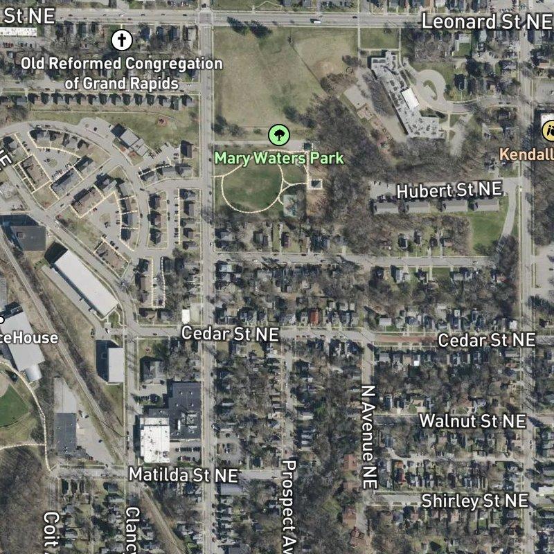 Perkins Add sits on Belknap Lookout's eastern edge, a seven-acre grid of modest lots where a 160-foot bluff frames your horizon and downtown Grand Rapids glows just under five minutes away by car. The lots run tight—about 0.12 acres each—so homes cluster close, and you're steps from transit if you need it. Mary Waters Park is a two-minute walk, and over a dozen more parks fill the mile around you; 138 restaurants sit within a mile, plus 42 grocery stores and coffee shops scattered across two miles. Homes here run around $200K, and you're zoned for Grand Rapids Public Schools. The Medical Mile's proximity and freeway access make this corner useful—downtown's near enough to walk to on a good day, and the airport's about 22 minutes out. It's tight urban living without the downtown density.