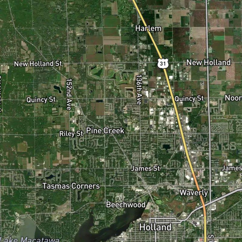 The first thing you notice about Pine Wood Lake Estates Area is the ranch homes dotting tree-lined streets—a sprawling 2,012-acre neighborhood where most houses sit comfortably in the $380K range and the vibe feels decidedly suburban without the cramped feeling. You're about 43 minutes from downtown Grand Rapids, but only 27 minutes from Grand Haven beach, which makes weekend escapes feel genuinely close. The neighborhood sits within Holland charter township, where West Ottawa Public School District serves the area. What makes this pocket work is the density of everyday stuff—72 restaurants and 66 grocery stores within a mile or two means you're never hunting far for dinner or groceries, and a coffee shop is a 4-minute walk if morning caffeine calls. Quincy Park sits less than a mile away, and if you've got a boat, Howard Dunton Park Launch is 2.5 miles south. There's a private pond here too, adding a quiet water element to the landscape. Transit is a step away, and the practical accessibility keeps the whole place feeling less isolated than its acreage might suggest.