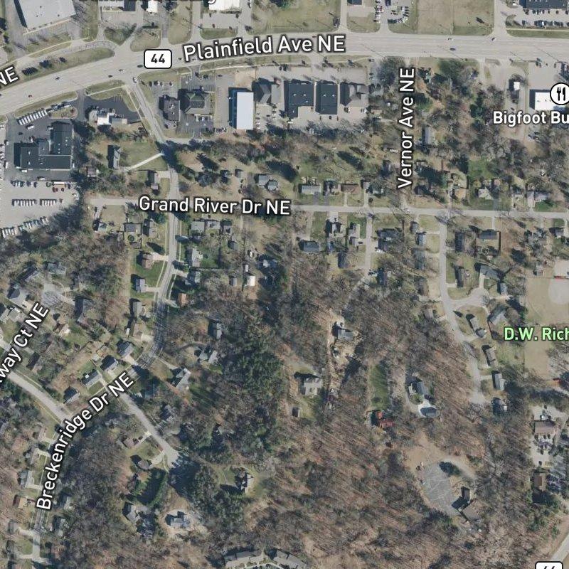 Most days here start with a choice that doesn't exist everywhere: walk to coffee in four minutes or drive somewhere else entirely. Plainfield Acres sits on 30 acres of half-acre lots in the Northview Highlands Area, close enough to downtown Grand Rapids that a commute takes about seventeen minutes, but far enough out that you're genuinely surrounded by space. The nearest grocery is a six-minute walk, and sixty-six restaurants cluster within a mile—enough variety that "what's for dinner" rarely feels like a real question. Kids attend Northview Public Schools, and D.W. Richardson Park is a five-minute walk away if you need to burn off energy without loading anyone into a car. Homes here run around $239K, and if you've got a boat, the Rogue River launch sits less than a mile down the road.