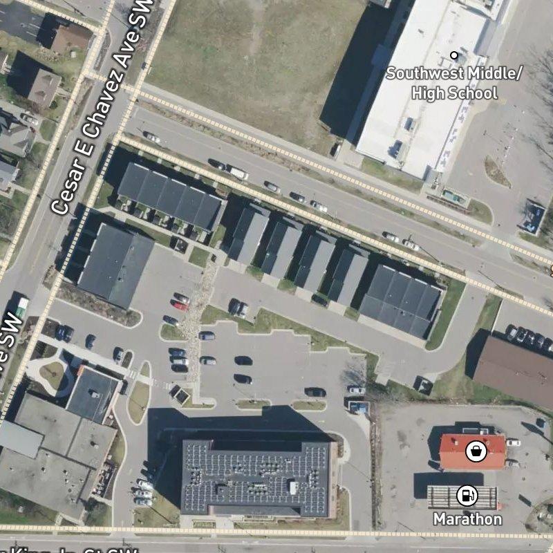 You'll find Plaza Roosevelt Homes just off a bend in the Grand River corridor, in Grandville, a pocket suburb southwest of Grand Rapids. The condo community sits on about an acre with an average lot size of 1.33 acres—enough breathing room without the sprawl. Clemente Park is a five-minute walk, and if you count everything within a mile, you're looking at 17 parks nearby, plus a boat launch at Butterworth Park less than a mile away. Homes here run around $252K, which keeps things grounded. Downtown is just 4.2 minutes away if you need it, though honestly most people working in the area won't spend much time on the road. A coffee shop is three minutes walking distance, and there are 138 restaurants within a mile—far more than you'd actually need, but it's the kind of abundance that makes grabbing dinner feel like a choice rather than a quest. Transit access is steps away, and the nearest grocery sits at 1.2 miles. The schools here fall under Grand Rapids Public Schools, and you're close enough to Grandville's core amenities without feeling swallowed by them. Gerald R. Ford Airport is a straightforward 22.6-minute drive when you need it.