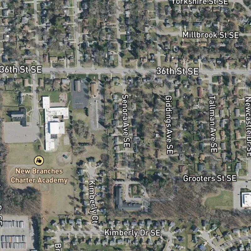 Spread across eight acres on the southeast side of Grand Rapids, Pleasant Homes sits within Ken-O-Sha Park, where mid-century ranch and raised ranch homes cluster on quarter-acre lots around a quiet residential grid. The subdivision anchors itself near substantial commercial and industrial infrastructure—Steelcase's innovation center sits just beyond the neighborhood boundary—yet the character here stays decidedly residential, with homes trading around $311K and proximity to the Plaster Creek Trail, a three-mile corridor that threads through the city and hosts everything from hikers to mountain bikers. A grocery store and several restaurants lie within walking distance, and downtown Grand Rapids is a twelve-minute drive north; if you need the airport, it's fifteen minutes southeast. Students attend New Branches Charter Academy, and the neighborhood's real anchor is Ken-O-Sha Park itself—its hundred acres, the nature playground, the wooden "Amplifier" megaphone structure designed to capture creek sounds and rustling leaves when you climb inside, the new learning areas—all reachable on foot in fifteen minutes.