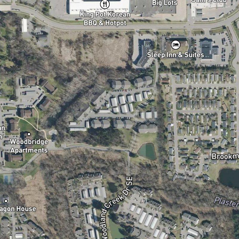 The whole development sits on seventeen acres of land that feels genuinely spacious for a condo community—the kind of place where you're not stacking units on top of each other but actually spreading out. What sticks with you is how much breathing room exists here without feeling remote. A grocery store is a six-minute walk, a coffee shop five minutes, and restaurants surround you (there are around two hundred forty within a mile), yet the community itself maintains that sense of land and separation. The nearest transit stop is two minutes on foot, which means getting downtown Grand Rapids takes about eighteen minutes if you need it, or heading to Gerald R. Ford Airport runs just under eleven.