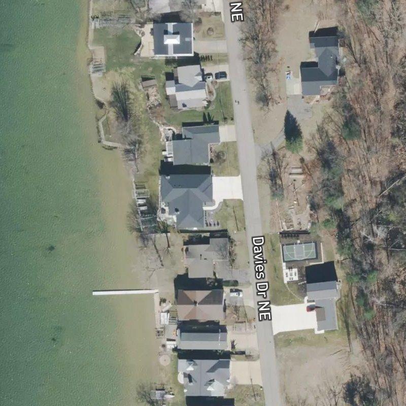 On the way to Potawatami Camp, you should know it's three acres of platted land just a third of a mile from Bostwick Lake—close enough that water access is genuinely part of the place. Homes here run around $1.3M and sit within Rockford Public Schools, with downtown Grand Rapids about 28 minutes away and Gerald R. Ford Airport roughly 35 minutes out.