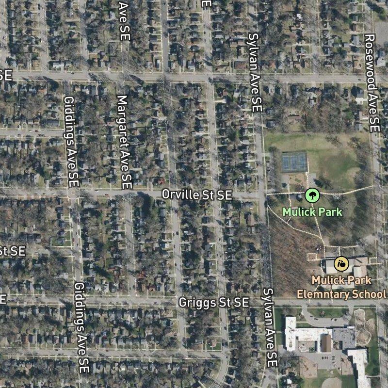 Early evening light catches the brick facades here—that's when Power Pine Add. really shows itself, a 23-acre pocket of Southeast End where homes run around $292K and lots average a tight 0.13 acres, which means the neighborhood has a genuine street-front feel without feeling cramped. Downtown Grand Rapids is just under 11 minutes away, and you're equally close to eight parks within a mile, with Mulick Park a three-minute walk if you need somewhere to land on a weeknight. The nearest restaurant sits about a minute's drive off, and there's real grocery depth nearby—48 options within two miles—so nothing feels forced or distant. Grand Rapids Public Schools serves the area, and transit access is a four-minute walk, which means you're not completely dependent on a car for everything. It's the kind of subdivision where the bones of the neighborhood—walkable blocks, mature trees, actual neighbors close enough to notice—matter more than any single amenity.