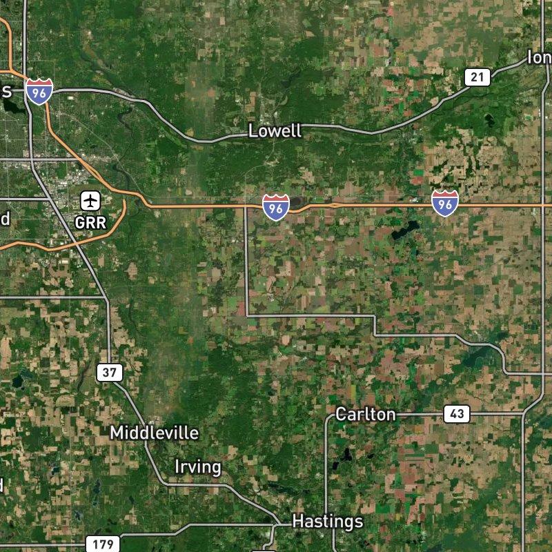 The grid where Pratt Lake Avenue meets 64th Street sits in the deep rural southeastern corner of Kent County, where properties sprawl across acres and the nearest stoplight is a solid 20 minutes away in Alto, the township's only real hub. This is farming country—the kind where wells and septic systems are standard issue and neighbors actually have breathing room. Six restaurants cluster within a mile, which sounds suburban until you realize most are scattered across those same acres rather than bunched on a main drag. Forest Hills Public Schools serves the area, and homes here run around $1.1M for that land-rich setup. Gerald R. Ford airport is about 22 minutes south; downtown Grand Rapids sits just beyond 30 minutes, far enough that you're genuinely choosing rural over convenient.