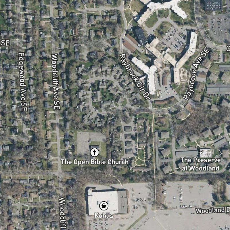 You'll know you've arrived when the trees open up—this mature condo community from the 1970s sits on 16 acres of wooded land near Woodland Mall and Calvin University, far enough from the main drag to feel removed but close enough that a trip downtown or to Gerald R. Ford airport takes about 15 minutes. The condos themselves are straightforward ranch-style units with gas fireplaces and detached single-car garages; what makes them work is the setup. Your HOA dues roll in heat, basic cable, water, landscaping, snow removal, and trash, which means fewer surprises come winter. There's a clubhouse with party rooms and guest bedrooms if you want the whole family over, and you're positioned right between the East Beltline and I-96 for quick highway access when you need it. Homes here run around $270K, and the whole feeling is one of genuine quiet without being isolated—a couple of parks are within walking distance, and you've got a grocery store and restaurants just a short walk or a few minutes' drive away.