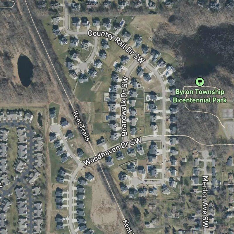 You'll notice the quiet residential feel here, where most neighbors actually own their homes and stick around—the kind of place where people are invested in their community. Railview Ridge No. 2 sits in Byron Center Public Schools territory with solid schools, and you're basically minutes from everyday conveniences like coffee and groceries, plus Kent Trails park is less than a mile away for when you need some green space. With a median home value around $422K and a commute that hovers under 24 minutes, it's a comfortable spot for folks looking to plant roots in the greater Grand Rapids area without going too far out.