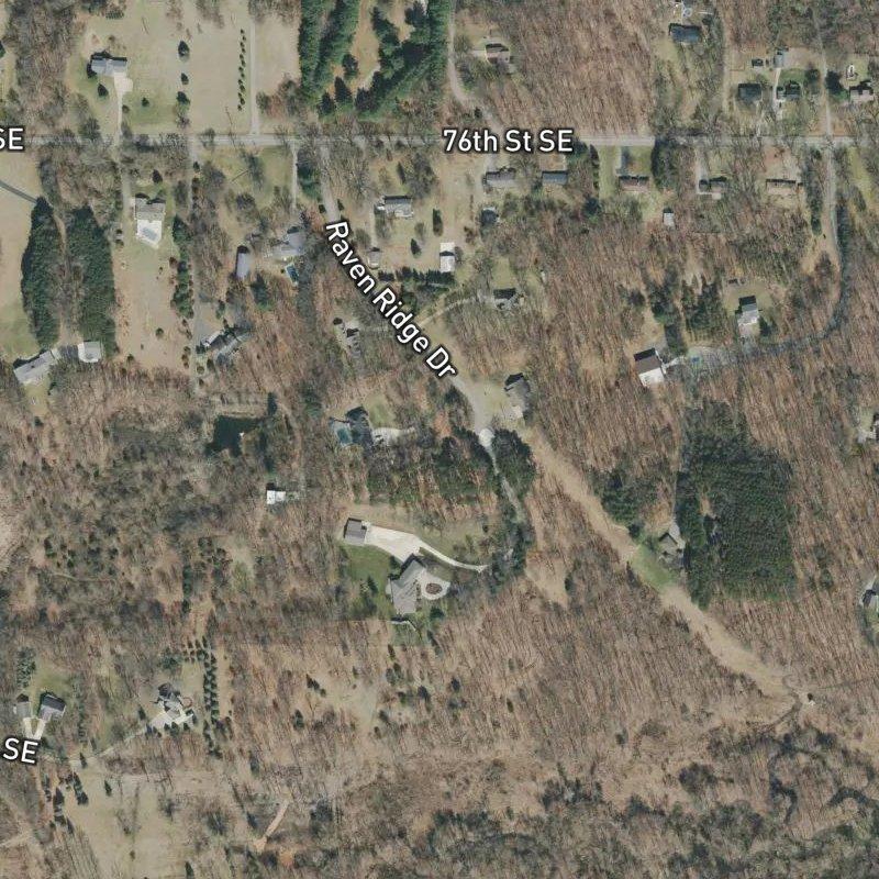 You expect a condo community to feel like a parking lot with mailboxes. Raven Ridge spreads across sixteen acres with home sites averaging nearly two acres each—which means your neighbor isn't close enough to hear what you're making for dinner. The development sits a short drive from Gerald R. Ford International Airport (nine minutes) and downtown Grand Rapids (about twenty-five minutes), threading that needle between accessibility and actual breathing room. Four parks sit within a mile, including Lepard Preserve less than a mile away, so the land here actually functions like somewhere you'd want to spend time outdoors instead of just move through.