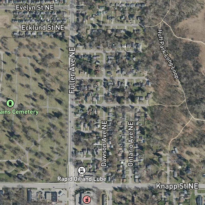 What catches most people off guard about Richards Fairplains Plat is how densely packed it is—23 acres carved into tight lots where homes sit close enough to feel like actual neighbors exist—yet a transit stop sits steps away and downtown Grand Rapids is less than 10 minutes by car. Median home values hover around $245K, making the North End slice feel genuinely accessible compared to what's happening elsewhere in the city. The restaurants aren't far at all; some are practically on the doorstep, and 54 sit within a mile, though if you need groceries you'll drive toward the 24 options scattered within two miles. Grand Rapids Public Schools serves the area, and Huff Park—one of four parks within a mile—is a six-minute walk, handy if you've got a dog you need to exhaust. Gerald R. Ford Airport runs about 23 minutes south, which matters if you travel regularly.