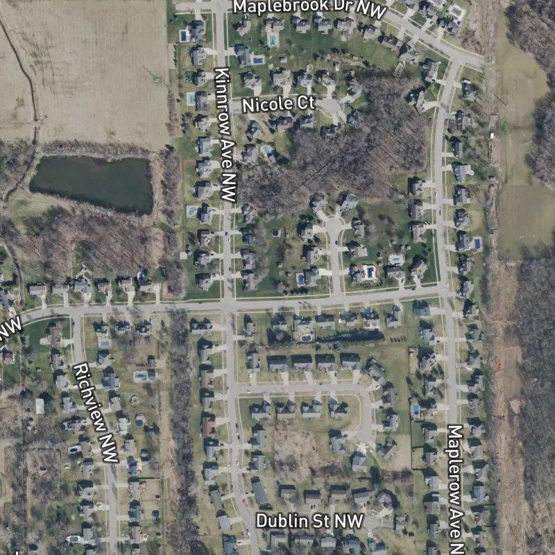The commute into town from Richview Estates No.1 runs about twenty-two minutes, which isn't bad for a 27-acre subdivision in the Greater Grand Rapids orbit where median homes sit around $260,000. You're close enough to grab coffee in just over two miles and dinner in a little over one. It's the kind of place where people actually stay put—62 percent owner-occupied—and build something steady on a median household income that hovers around $72,000.
