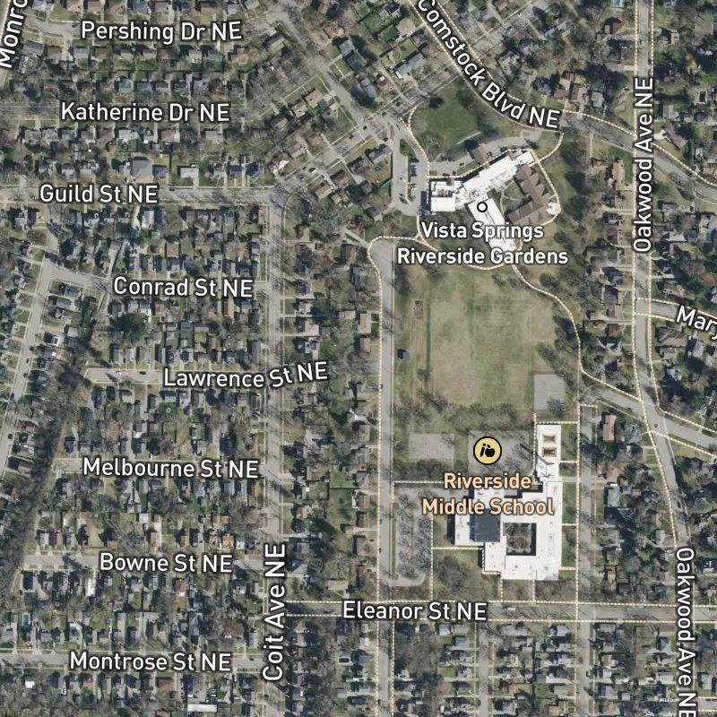 The quarter-acre lots here sit tight and tidy, with homes running around $351K—close enough to downtown Grand Rapids (7.5 minutes) that you're not choosing between city access and actual yard space. Riverside Gardens Add. No.15 anchors itself in Creston, where Plainfield Avenue's restaurant and retail corridor draws a steady hum of activity, and you've got 30 restaurants within a mile if cooking isn't in the cards. Riverside Park, the city's largest, sits a five-minute walk away with trails threading along the Grand River; a boat launch at Comstock Riverside is less than a mile down the road if the water calls you. The subdivision feeds into Grand Rapids Public Schools, and a transit stop lands eight minutes on foot when the car can stay home. Grocery shopping and coffee won't require a quest—both under two miles—and the whole 8-acre plat keeps the feel of an actual neighborhood rather than a placeholder between highway and mall.