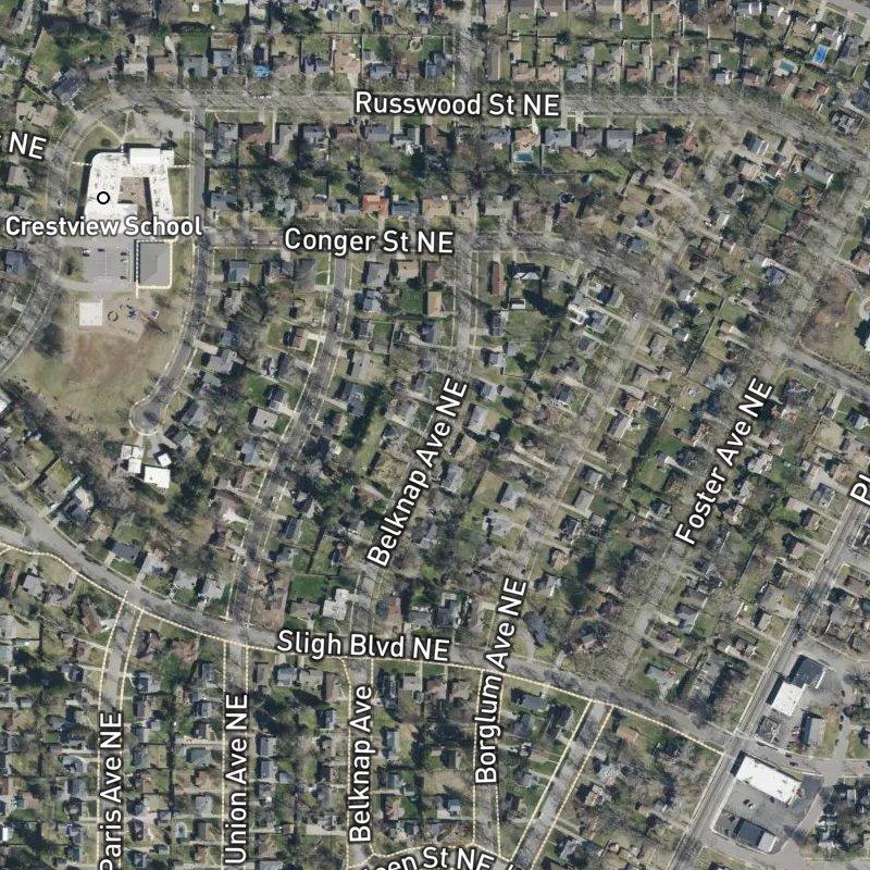 Driving through Riverside Gardens Add. No.16, you notice right away how the six acres sit tight and walkable—tree-lined streets with modest lots averaging a quarter-acre, the kind of scale where neighbors see each other but everyone still has their own space. You're deep in Creston, that sprawling Grand Rapids neighborhood where Plainfield Avenue's restaurant and gallery scene keeps pulling new energy through, and this subdivision feels like its quieter spine: close enough to grab coffee or dinner on foot (a restaurant's about eight minutes down the road), but backed by something the whole area treasures, Riverside Park and its trails slung alongside the Grand River. The numbers tell the story—homes run around $392K, schools here are Grand Rapids Public Schools, and downtown is just under ten minutes away—but what matters is the feeling: you're in a real neighborhood with eighteen restaurants within a mile and seven parks nearby, yet everything stays human-scaled. Veterans Nature Trail is a short walk, and if you want to launch a boat, Comstock Riverside Park is barely over a mile out.