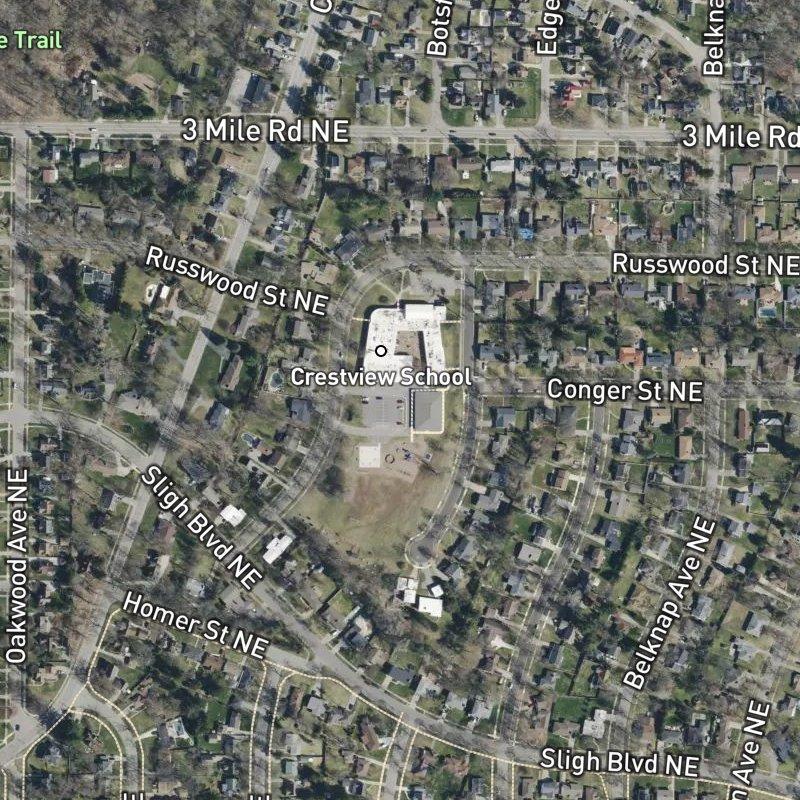 Riverside Gardens Add. No.19 sits on nineteen acres carved into quarter-acre lots—the kind of size that lets you have actual grass without feeling like you're maintaining a golf course. You're deep in Creston, where late-nineteenth-century Victorians and ranch homes line streets that genuinely connect to things: downtown Grand Rapids is less than ten minutes away, and Riverside Park, the city's largest, sprawls alongside the Grand River just beyond your neighborhood. Seven parks cluster within a mile, and the Veterans Nature Trail is a seven-minute walk if you want to move without getting in a car.