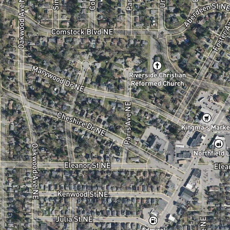 The lots here run narrow—just under a quarter-acre each—which means the houses sit close enough that you'll actually see your neighbors on the porch. Riverside Gardens Add. No.7 sits squarely in Creston, where Plainfield Avenue's steady stream of restaurants, bars, and shops bleeds into residential blocks lined with older ranch homes and cottages. You're steps from a transit stop and literally surrounded by dining: forty-two restaurants within a mile, from casual spots to something worth a real dinner. Downtown Grand Rapids is eight minutes away by car. Homes here run around $497K.