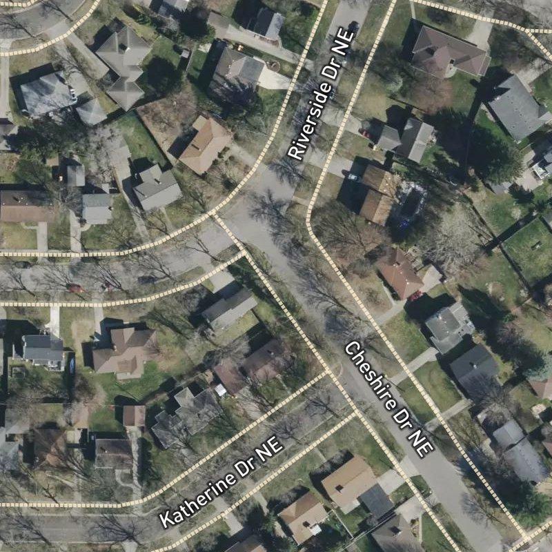 Early evening in Riverside Terrace Add. No.2, when the light hits the brick and the block feels settled—that's when you notice what drew people here in the first place. These four acres sit in Creston, close enough to downtown Grand Rapids that an 8-minute drive gets you there, but removed enough that you're living on residential streets lined with modest ranch and cottage homes on tight lots averaging a sixth of an acre. The median home price hovers around $285K, and schools fall under Grand Rapids Public Schools. What makes this plat work is proximity without the feeling of it: Riverside Park is a two-minute walk away, with trails heading north; eighteen restaurants sit within a mile, and a transit stop is six minutes on foot. The Grand River is close. It's the kind of place where you get density's advantages without its noise.