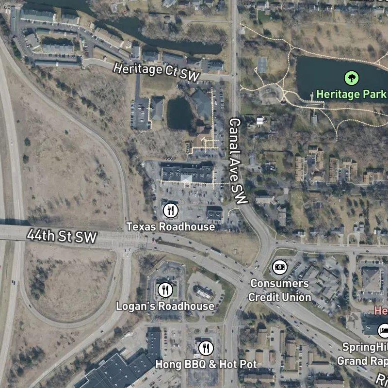 ...so you've got a condo community that actually has some legs to it. Rivertown Market sits on 5 acres in the Sutton Estates Area, and the whole setup is designed around convenience — restaurants are literally steps away, a grocery store's an 8-minute walk, and Heritage Park is a 4-minute stroll if you want to move around without a car. That fitness walkability score of 10 out of 10 isn't random; the transit access is just as solid, which means you're not stranded if you'd rather skip driving somewhere. Downtown Grand Rapids is about 15 minutes out, and the airport lands around 25 minutes, so weekend trips or business travel don't eat your whole morning. Homes here run around the mid-$200Ks, which positions them as a real option in this corner of West Michigan — you're getting density, walkable dining (150 restaurants within a mile), and actual access without the urban price tag. Grandville Public Schools feeds the area, and if water matters to you, Kenowa Lake is less than a mile away, with a boat launch at Grandville Launch under 2 miles. The neighborhood lands at a 6 out of 10 overall for walkability, which is honest — you'll drive for some things — but the immediate texture here is built for people who like options: coffee, groceries, a meal, or a park, all reachable without thinking too hard about it.