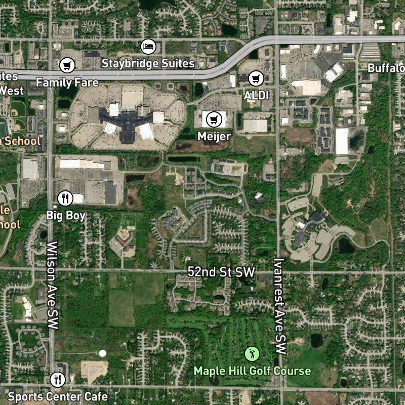 You'll want to catch this place in late afternoon when the 51-acre grounds soften in the light and the whole community feels like it's taking a breath. Rivertown Park sits right where walkability actually works — a grocery is a quick 3-minute stroll, restaurants cluster within a mile (there are 192 of them, no exaggeration), and coffee shops are 9 minutes on foot if you're moving slow. The nearest transit stop lands 4 minutes away, which means you're not tethered to a car for every errand, though downtown Grand Rapids is only 17.4 minutes by drive when you want the city proper. Condo homes here run in the mid-$200s to low $300s range, and you're buying into a carefully planned community that doesn't feel cramped despite its 51 acres housing multiple buildings. Kent Trails, one of two parks within walking distance, sits less than a mile away and gives you actual green space without having to hunt for it.