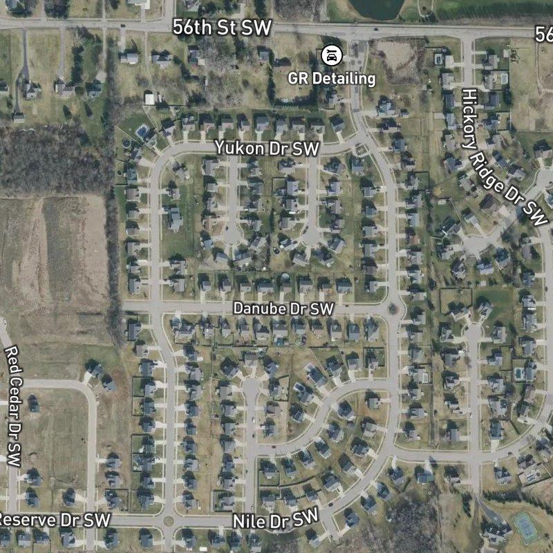 Golden hour hits this 15-acre subdivision just right—the light softens the newer construction and makes the quarter-acre lots look generous without feeling cramped. You're in the Koster South Area, a short 17-minute drive from downtown Grand Rapids, with homes running around $457K and enough restaurants (a dozen within a mile, another dozen beyond) that you won't exhaust the circuit anytime soon. A coffee shop is an 11-minute walk if you're the type; a grocery store sits 1.3 miles away. Grandville Public Schools handles the district. Kent Trails park sprawls 1.4 miles out for weekend rambles. This is the kind of place where you get actual land, actual space between houses, and actual proximity to the stuff you use—no exotic promises, just the math that works.