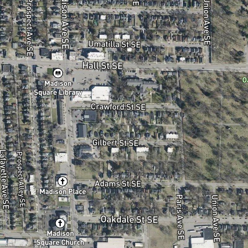 The thing that sticks with you about Robinson's Fair Ground Add. is how much green space sixteen acres can hold—ten parks within a mile, and Alexander Park sits just an eight-minute walk away. You're in Southeast Grand Rapids, part of the Seeds of Promise area, where the bones of an older neighborhood have real character and room to breathe. Downtown is six and a half minutes by car, and a transit stop is practically at your door.
