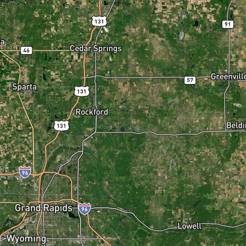 ...and if you head out to Rockford Village Builders Plat Area, you're looking at a sprawling neighborhood in Cannon township where ranch homes sit on generous land—median price around $460K—with Silver Lake just 0.7 miles away and waterfront access to Bostwick Lake and Lake Bella Vista right there if you need it. The neighborhood's got serious walkability: grocery stores and restaurants are literally steps away, over a hundred dining spots within a mile, and you're 26.9 minutes from downtown Grand Rapids if you need the city. Schools feed into Rockford Public Schools, and there's Balk Family County Park less than a mile out for when you want to stretch your legs. It's that sweet spot where you've got land and space but you're not driving forever for coffee or dinner.