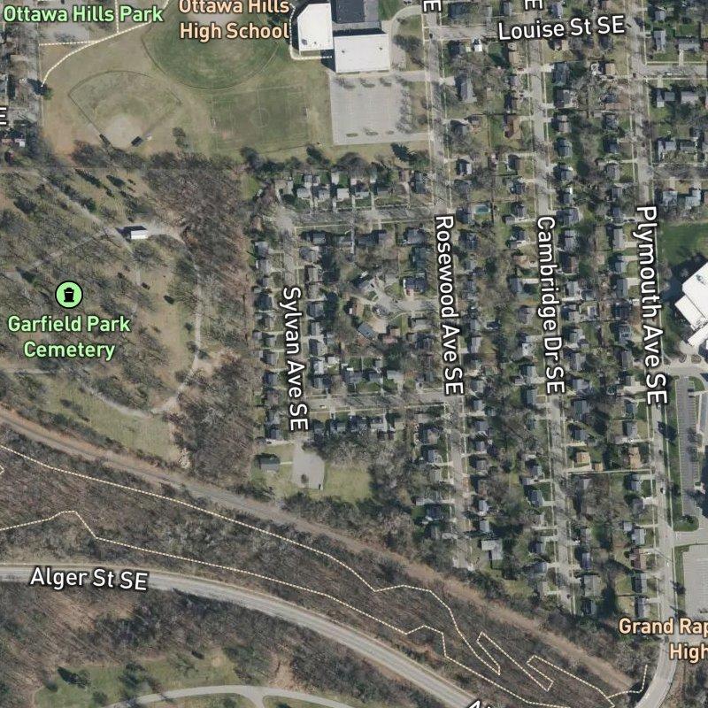 Waking up here means tree-lined streets instead of traffic noise, and a quick stroll to school or the grocery store instead of a car ride—though downtown Grand Rapids is just 13 minutes away when you need it. The subdivision sits on 18 acres of 1950s and '60s ranch-style and split-level homes built on modest lots (around 0.19 acres), so you get that suburban feel without the sprawl, with mature trees and sidewalks connecting everything. Forty-eight restaurants and 36 grocery stores within a mile or two means real choice—coffee's just over a mile down the road if you're not making your own. Grand Rapids Public Schools serves the area, and you're surrounded by a high concentration of schools including both public and faith-based options. The median home here runs around $367K, and the housing market moves fast. Ottawa Hills High School Athletic Fields is a five-minute walk away, with eight parks within a mile, so there's always something green nearby. It's the kind of place where the daily grind feels less grinding.