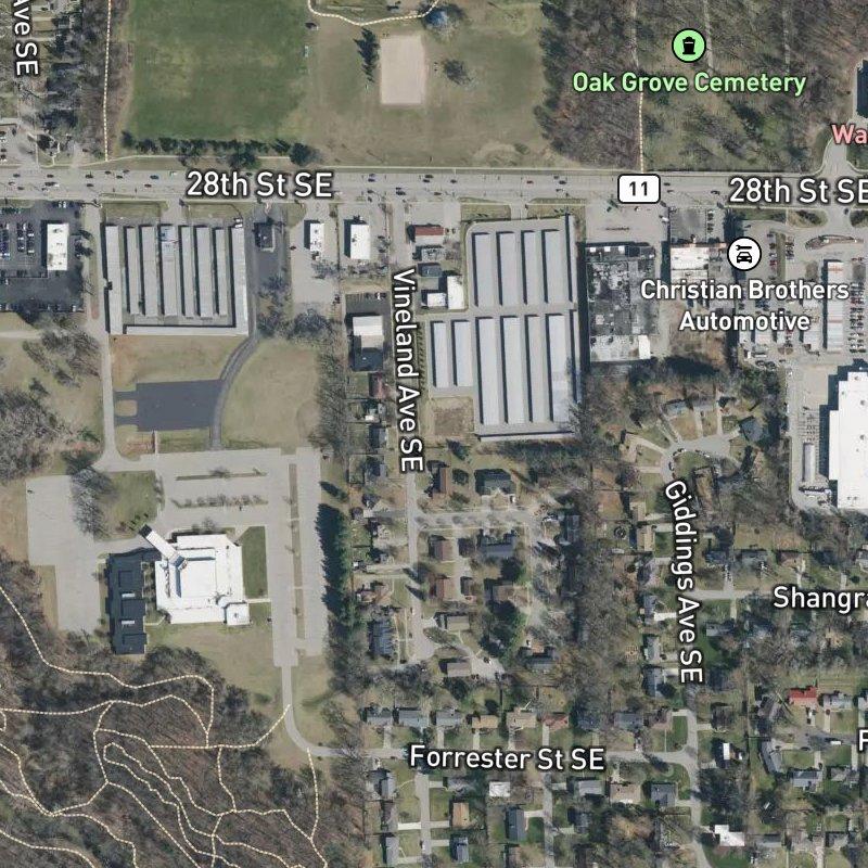 Sitting within Ken-O-Sha Park, Rottschafer Plat occupies just six acres on Grand Rapids's southeast side, where mid-century ranch and raised ranch homes cluster on modest lots—about a third of an acre each—with a 10-minute commute to downtown and 15 minutes to the airport if you need either. What makes this spot work is the sheer density of actual life around you: 36 restaurants and grocers within a couple of miles, a transit stop literally steps away, and Ken-O-Sha Park just a five-minute walk out your door, where the Plaster Creek Trail and that wooden Amplifier structure sit waiting on 100 acres of green space. Homes here run around $342K, and Grand Rapids Public Schools handles the schools—practical, accessible, the kind of neighborhood where you're not paying for prestige, just a solid place to live with real access to what you actually use.