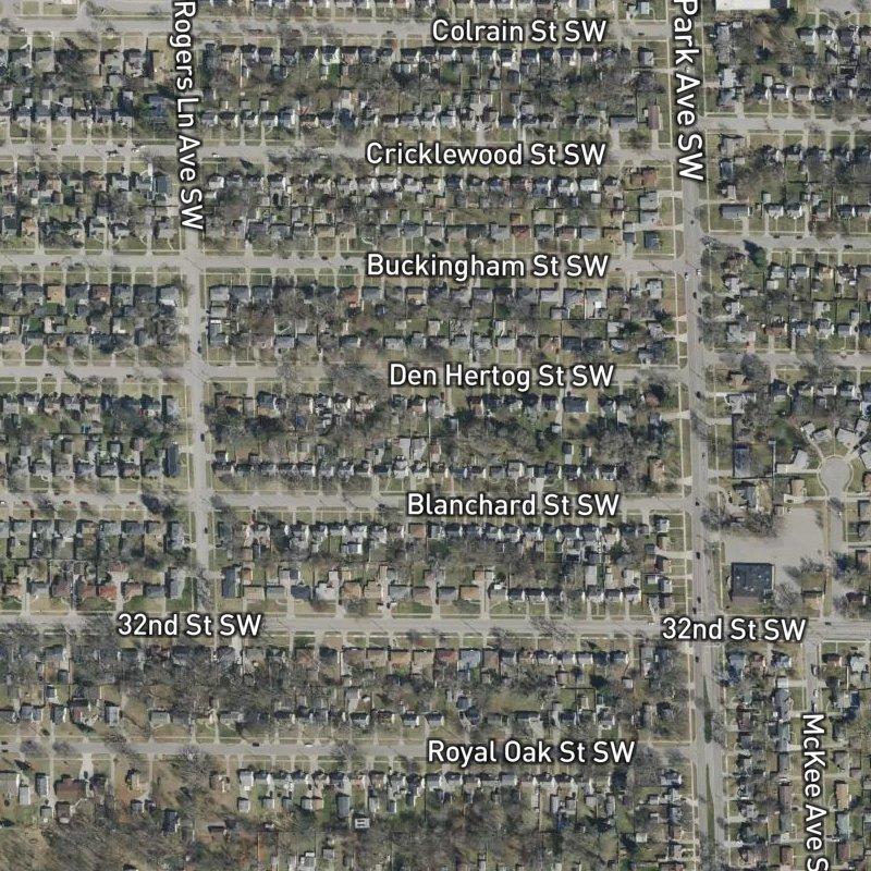 This 9-acre subdivision sits less than nine minutes from downtown Grand Rapids, which means a quick commute doesn't require much planning—just habit. Homes run around $264K, with lots averaging just under a fifth of an acre each, trading square footage for location efficiency. The nearest grocery is a six-minute walk, and there are 54 restaurants within a mile, though the dining variety score sits at a modest 5.1 out of 10, suggesting solid options without standout abundance. Transit access is immediate—a stop is steps away—which actually does something rare: it makes the car optional on some days. About a mile up the road you'll find an unnamed park, and five more green spaces within a mile total. If water access matters, Butterworth Park Launch is just over three miles away for anyone with a boat. Schools fall under Wyoming Public Schools, and the area absorbs that practical West Michigan rhythm—close enough to the city to feel connected, far enough out that you're not paying for density.