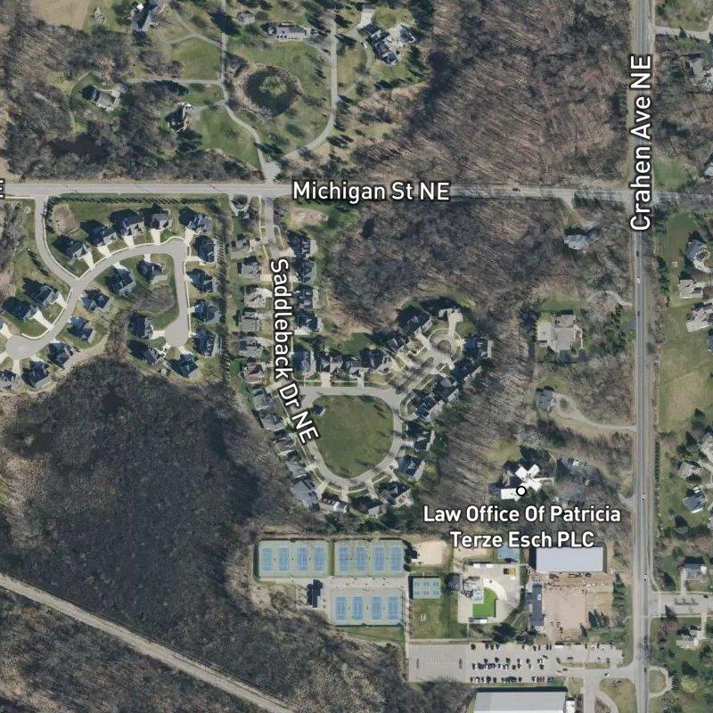 Living at Saddleback Village means a shorter commute than most—downtown Grand Rapids is just over 12 minutes away, and Gerald R. Ford Airport is under 18. The community spreads across 21 acres of condo-style homes with an average lot of roughly a third of an acre, keeping things compact without feeling cramped. Most days you're running errands within a mile or so: the nearest grocery is 1.5 miles out, a coffee shop and restaurant sit about the same distance, and six different grocery stores are within two miles if you want options. Hidden Lake lies just 1.2 miles away for weekend outings, and Forest Hills Park anchors the area at 1.4 miles—both close enough that a drive takes almost no time. Homes here run around $975K, and the Forest Hills Public Schools district covers the area. The real setup, though, is the location itself: you're inside the Leonard St & Crahen Ave Area where proximity wins. Fifteen minutes to the airport, a dozen minutes to the city, and everything you need for the week within shouting distance—that's what defines the rhythm here.