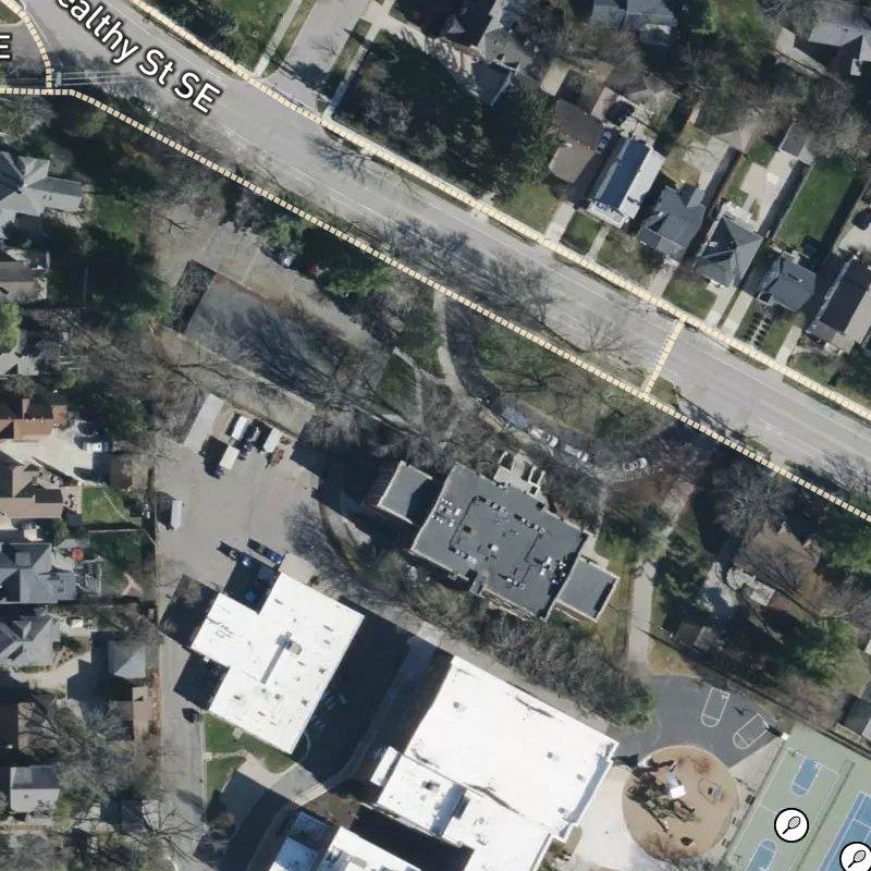 Wealthy Street SE runs right past this 1920 schoolhouse, now carved into condos with the kind of character you can't manufacture—original bones, modern finishes, the whole thing rarely available when the market shifts. You're steps from Gaslight Village's heated sidewalks and within a few minutes' walk of restaurants, a grocery, and coffee, or if you'd rather drive, downtown Grand Rapids is about nine minutes away. Units run from roughly $105,000 for a one-bedroom (around 640 square feet) to $270,000 for a two-bedroom, and the building itself is described as extremely quiet—the kind of place where you actually hear yourself think.