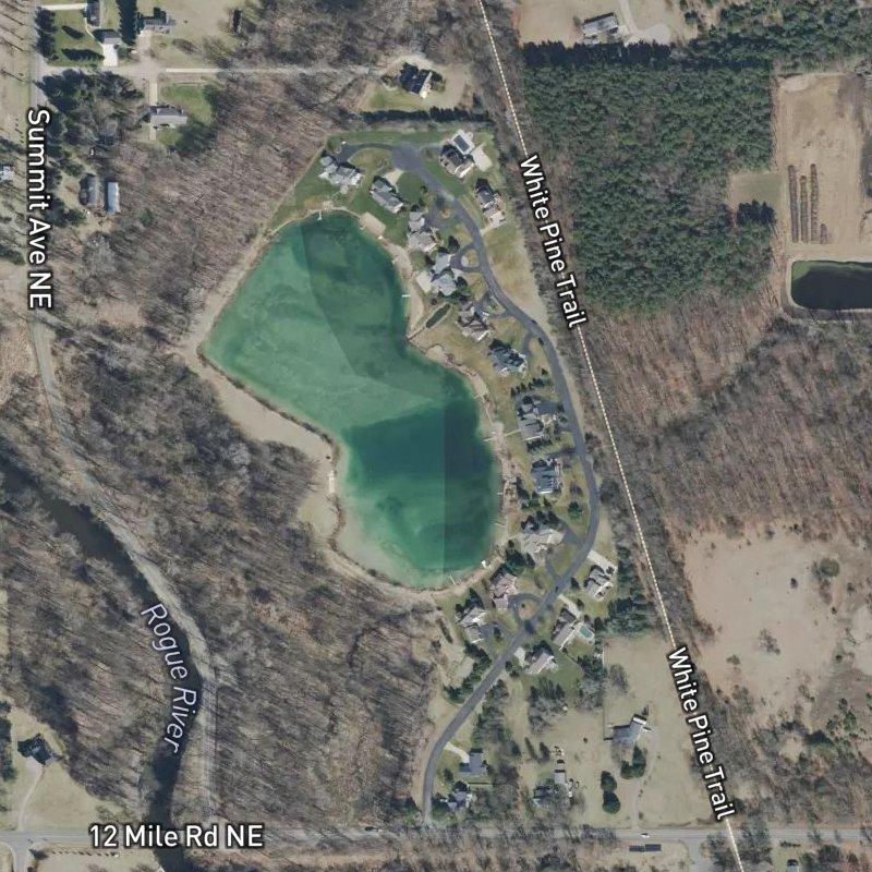 Look, if you're coming out here thinking you're going to find some mass-produced sprawl, you're in for a surprise. Serenity Shores is 28 acres of condo living that doesn't feel like you're parked in someone else's idea of development—lot sizes average 0.60 acres, which means there's actual breathing room between you and the next person. Homes run around $878K, and you're close enough to downtown Grand Rapids that it's a straight shot down the highway (about 25 minutes), but far enough removed that you're not hearing any of it. The Rogue River Launch is basically a five-minute walk if you're into that sort of thing, and 12 Mile Trailhead Park is an eight-minute walk away if you want to burn off whatever you grabbed from the coffee shop 1.8 miles down the road. Rockford Public Schools serves the area, and there's grocery and restaurant access within a couple of miles—nothing fancy, just functional—so you're not living on an island.