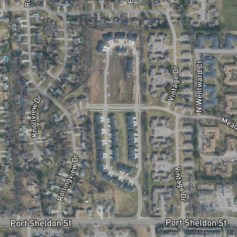 What sounds like a bedroom community might actually be something closer to a town unto itself. Sheldon Crossings is 21 acres of condos in the Highpoint Acres Area, where you're far enough from downtown Grand Rapids—about 20 minutes—that you don't wake up to traffic noise, but close enough that you're not commuting to another planet. Homes here run around $620K. The real surprise is the density of actual life nearby: thirty restaurants within a mile, a grocery store a seven-minute walk away, coffee shops, and three parks close by, including Port Sheldon Sports Complex just nine minutes on foot. You get the breathing room of a condo community without the isolation of a place where your closest taco is fifteen miles away. The Hudsonville Public School District serves the area. Gerald R. Ford airport sits about thirty minutes out if you travel regularly, and enough grocery stores and restaurants cluster within two miles that running errands doesn't feel like an expedition. It's the kind of place where the setup itself does some of the work—enough space, enough stuff nearby, enough happening without requiring you to hunt for it.