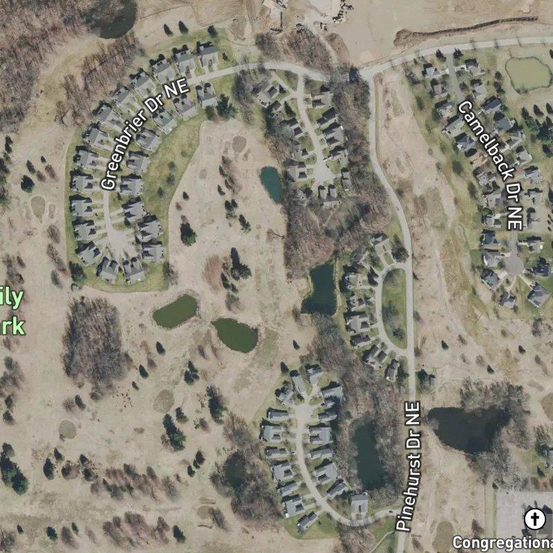 ...so you're looking at 34 acres of condos where homes run around $425K, which lands you about 26 minutes from downtown Grand Rapids if traffic cooperates. Balk Family County Park is a five-minute walk away, and Silver Lake itself sits less than a mile off, so you're not entirely landlocked despite the suburban feel. The nearest grocery store is about a mile and a quarter out, with six options within two miles if you want to shop around, and restaurants cluster in roughly the same radius. Gerald R. Ford Airport is 34.5 minutes away, which matters if you travel regularly. Kids here feed into Rockford Public Schools, and the whole setup sits within the Rockford Village Builders Plat Area, which is to say it's a planned community that knows what it is — not pretending to be a downtown loft or a rural estate, just condo living with reasonable access to what you actually need.