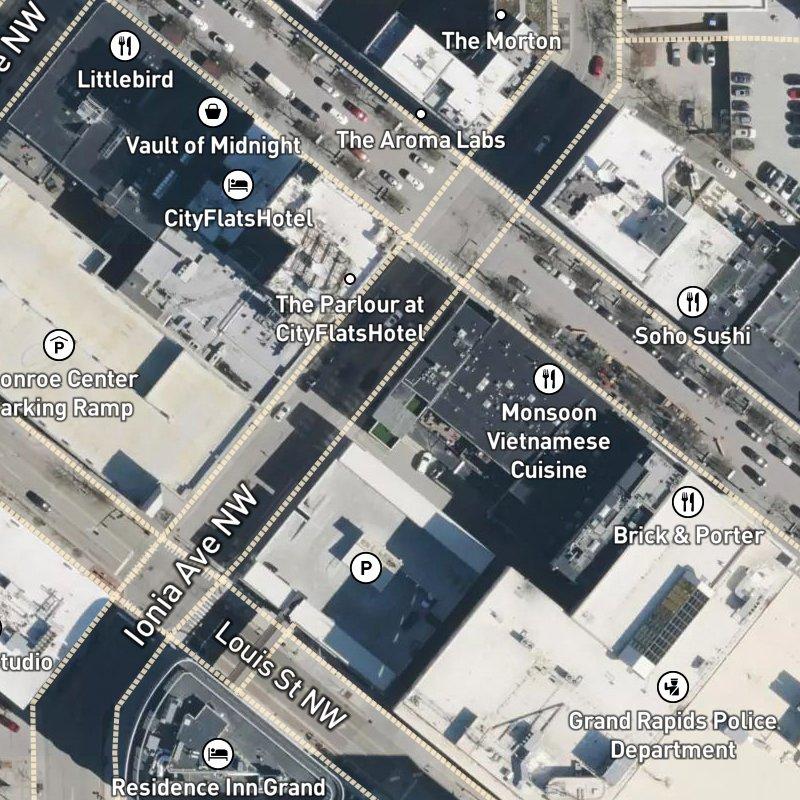 Monroe Street runs through the heart of Downtown Grand Rapids, and Sixty Five Monroe Center sits right on it—meaning your front door opens onto a street humming with breweries, restaurants, and galleries. You're steps from coffee shops and dining that spans taquerias to fine-line kitchens; there are 462 restaurants within a mile, which is less a statistic and more a lifestyle choice. Transit stops are also steps away, and the Grand River and its parks are close enough that Monument Park—with its walking paths and public art—is a two-minute walk. The Medical Mile, with its research facilities and academic centers, anchors the north end of downtown, lending a serious backbone to all the cultural activity. Condos here run around $457K, and you're looking at roughly 21 minutes to Gerald R. Ford Airport and half a minute to downtown proper—though living here, you're already downtown, where ArtPrize transforms the entire district every fall and the craft beer scene includes Founders, HopCat, and dozens of other breweries that helped Grand Rapids claim Beer City USA. Walk scores for dining and transit hit 10/10; it's the kind of address where your Saturday looks different depending on what's open, and your commute is whatever you want it to be. Thirty-one parks sit within a mile—plenty of green space for someone who appreciates urban density without feeling boxed in.