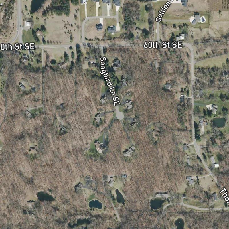 Driving through Songbird Ridge, you move through a spacious world of generous lots—nearly two acres per home—where the rhythm slows. The condo community sits on eighteen acres in the 68th St & Egan Ave Area, with homes running around $922K. It's the kind of place where you can actually see sky between houses, where there's room to breathe without feeling like you're at the edge of things. Gerald R. Ford airport is just six and a half minutes away, which means you're close enough for convenience without the constant reminder of it.