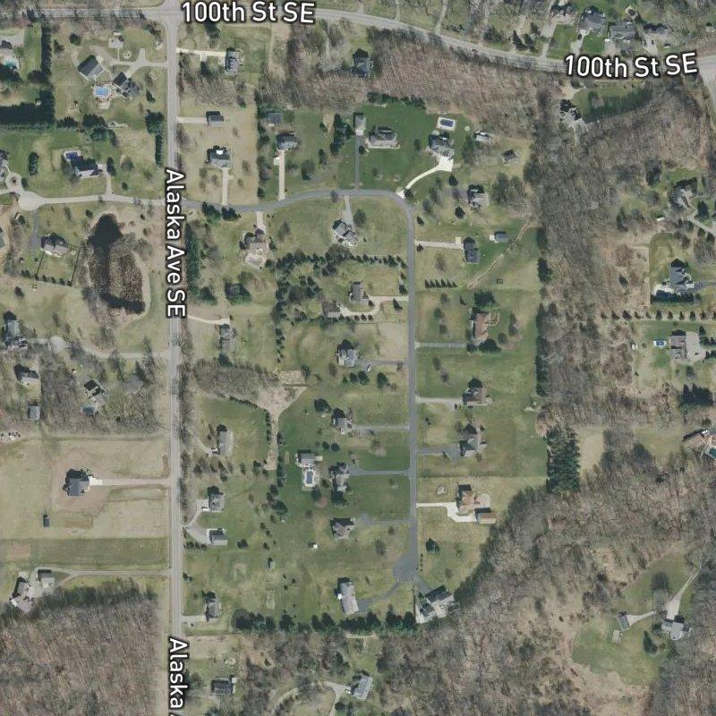 The moment you turn onto the tree-lined drive, the lots open up—1.84 acres each, spread across 47 acres of actual breathing room, which feels genuinely rare in Michigan these days. South Ridge Site Condominiums sits in the 100th St & Whitneyville Ave area, about 15 minutes from Gerald R. Ford Airport and half an hour from downtown Grand Rapids, close enough to reach either without feeling like you're commuting into someone else's life. Homes run around $566K, which gets you condo living with land; a grocery store lands roughly 1.8 miles away, and if you need coffee or dinner, both hover around a mile and a half down the road. The nearest park—Two Rivers Park—is just under a mile out, and Blodgett Lake sits 1.8 miles away for whenever you want water that isn't in your driveway.